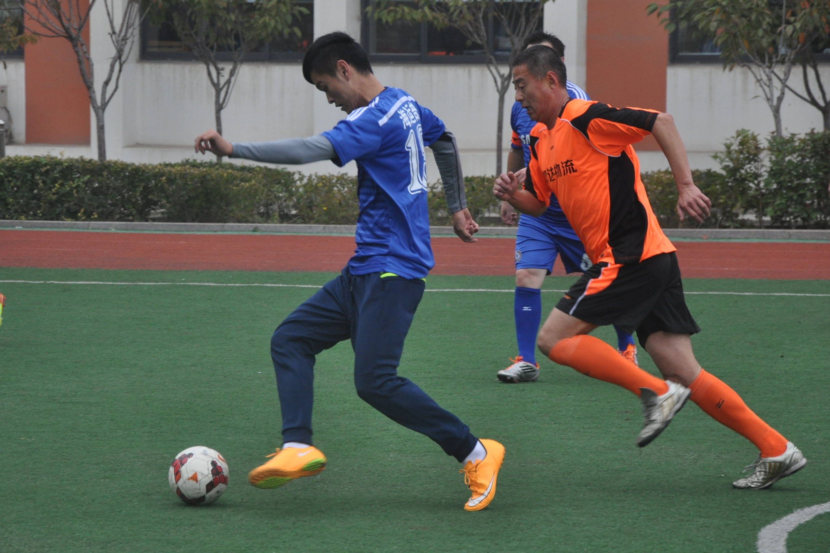 接著出場的是黃色海新達代表隊和淺藍空運代表隊,海新達是公司的一個合資企業(yè),是一支既有實力又有執(zhí)行力的隊伍,空運隊也實力不凡,從場上帶球過人、射門等一氣呵成的動作中不難看出他們時常鍛煉的成果啊。最終,海新達和空運隊以3比6結束了本場比賽。