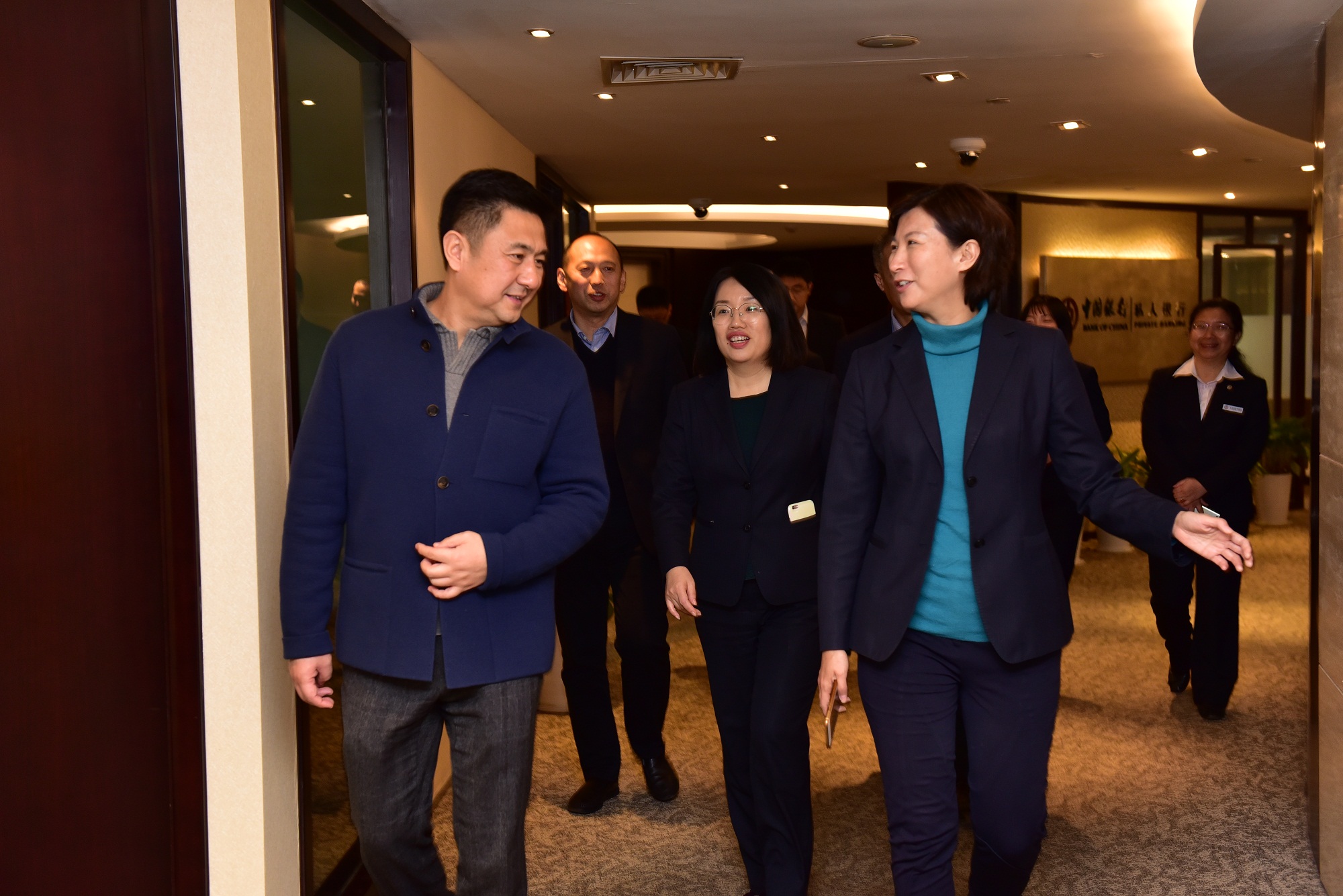 在馮玲芝總經(jīng)理的陪同下,唐總一行參觀了中國銀行分行49樓的私行中心,并聽取了中國銀行分行及營業(yè)部的歷史沿革和基本情況。隨后,雙方人員進行了深入的座談交流。