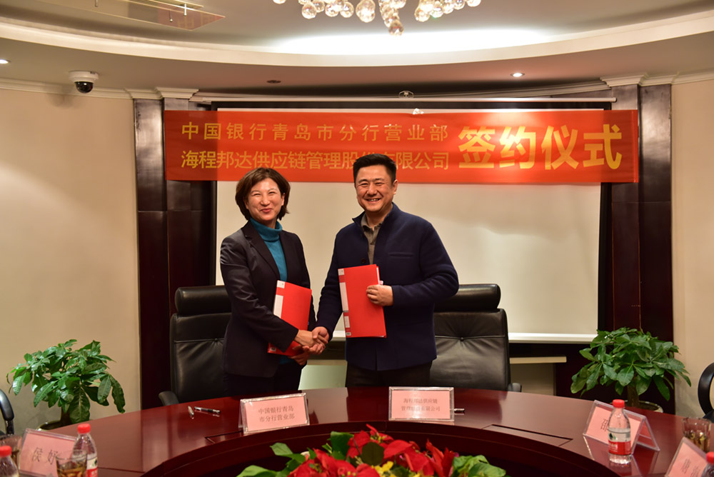 2018年12月25日,海程邦達供應鏈管理股份有限公司(以下簡稱“海程邦達”)與中國銀行營業(yè)部舉行座談,并簽署了戰(zhàn)略合作協(xié)議。公司董事長兼總經(jīng)理唐海、財務總監(jiān)楊大偉,中國銀行營業(yè)部總經(jīng)理馮玲芝、副總經(jīng)理鄒德鵬、高級經(jīng)理呂品共同出席了簽約儀式。